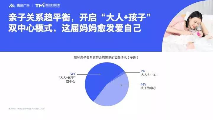 在過去,“一切為了孩子”是我國普遍的家庭模式,然而隨著90后“辣媽”成為母嬰主流人群,這種家庭關(guān)系已悄然改變。數(shù)據(jù)洞察顯示,當(dāng)前的親子關(guān)系趨于平衡,“大人+孩子”雙中心模式成為更多家庭的選擇(54%)。這一屆媽媽們努力擠出更多時間給自己,她們愛美、愛玩、愛學(xué)習(xí),面對育兒壓力懂得自我釋放和紓解,看劇看綜藝成為放松、調(diào)節(jié)情緒的較好出口。